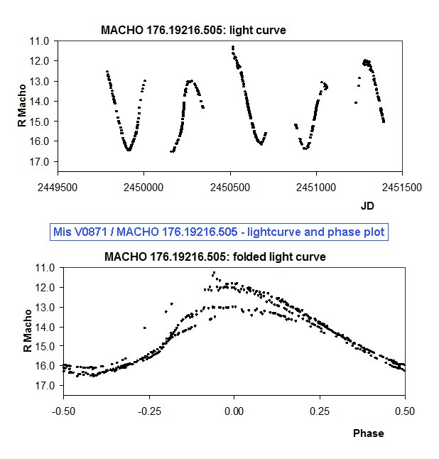 Mis V0871 / MACHO 176.19216.505 - lightcurve and phase plot