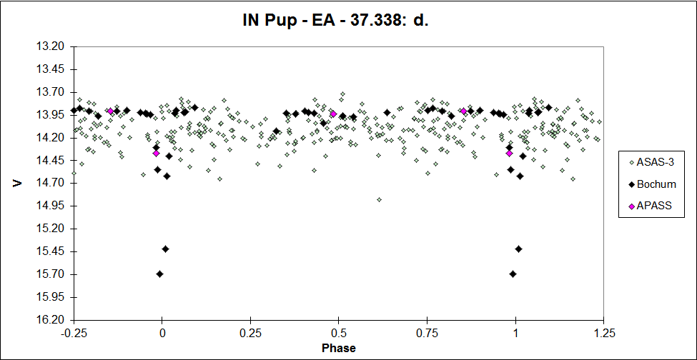 Three eclipses from Bochum and APASS data give a period of 37.338 d. but ASAS-3 data don't show eclipses with that period. Also the epoch 2429696.362 in