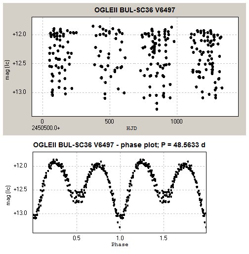 OGLEII BUL-SC36 V6497 - light curve and phase plot