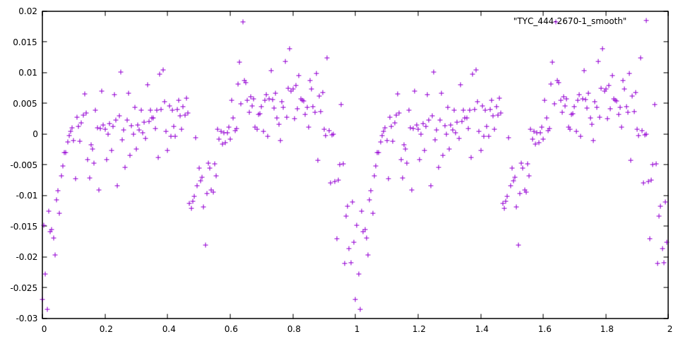 Data points folded on a period of 0.2350 days and then smoothed by binning.