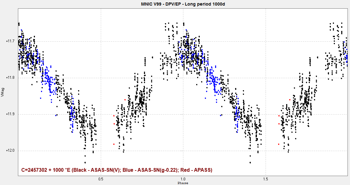 J-K= 0.86, B-V= 0.40. Elements for the long period: HJDmax: 2457302 + 1000 d. x E. Period ratio 21.67. ASAS-SN magnitudes contaminated by 2MASS J00324304+6318190 (V= 15.3; sep. 10"). Range has been corrected.