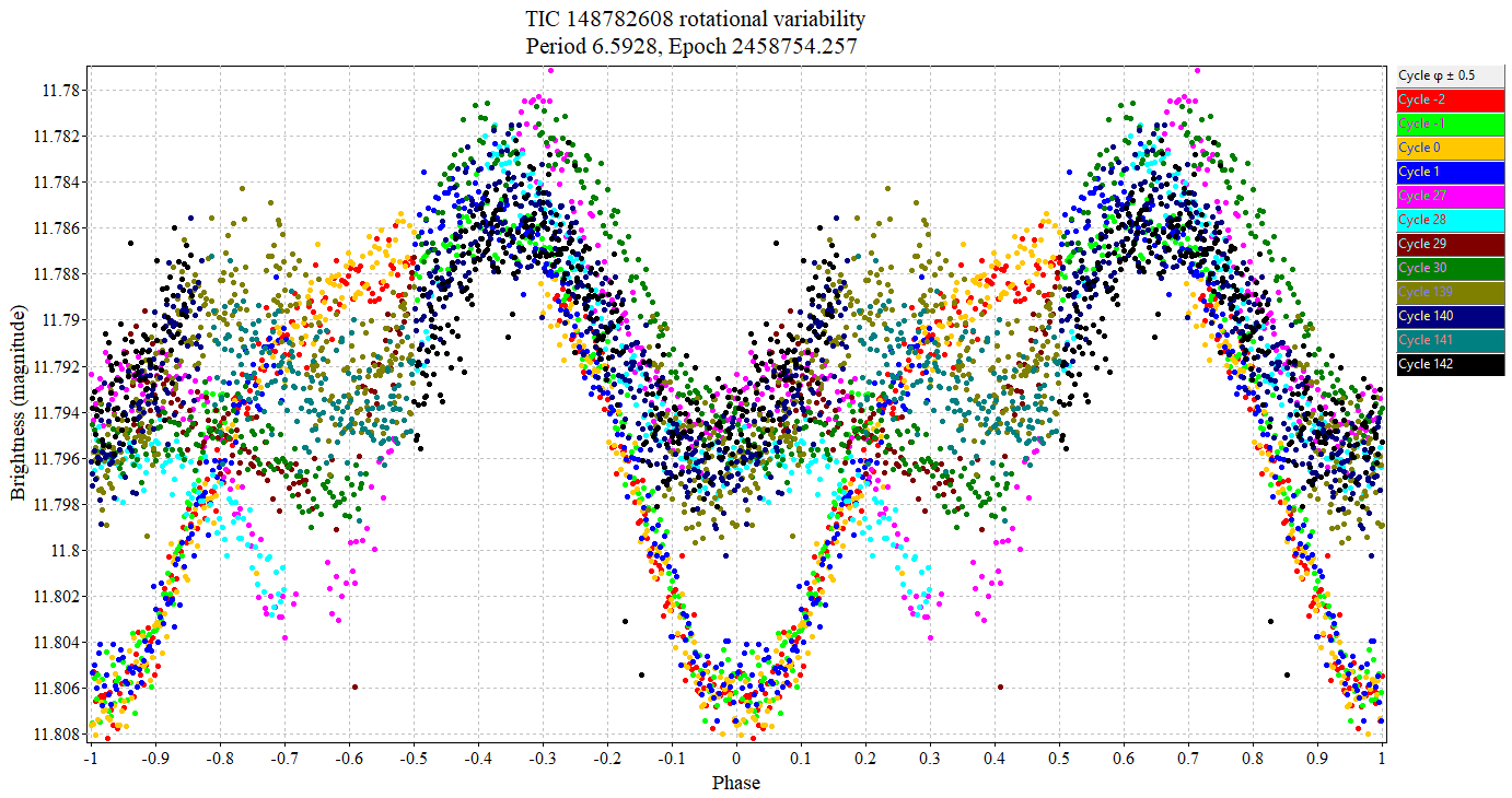 J-K= 0.33, B-V= 0.44 (APASS DR9). Rotational variability with elements HJD 2458754.257 + 6.5928 d x E, amplitude 0.028 TESS. |