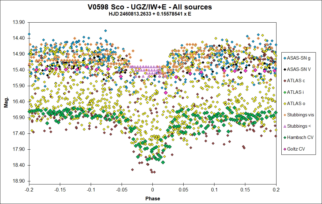 Type and range from ASAS-SN, ATLAS and Stubbings data. Period, epoch and eclipse duration from ATLAS, ASAS-SN and AAVSO (Stubbings, Hambsch and Goltz) data. |